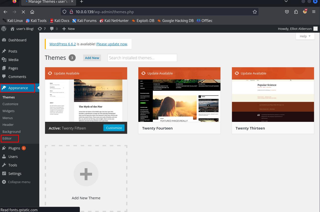 13、在网站后台管理页面,寻找可利用的地方。在"Appearance"菜单下"Editor",可以编辑源文件并提交。