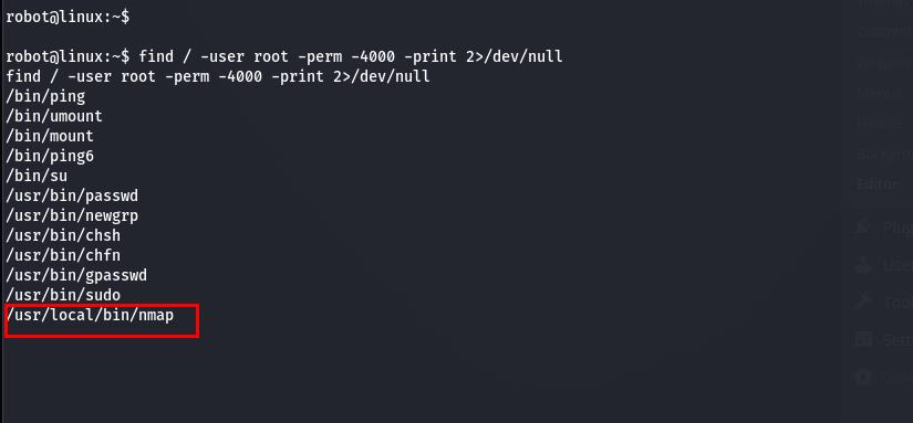 Nmap(2.02到5.21)有交互模式,允许用户执行shell命令。