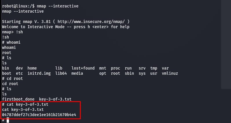进入交互模式,接着使用命令:!sh 成功提权为root用户。