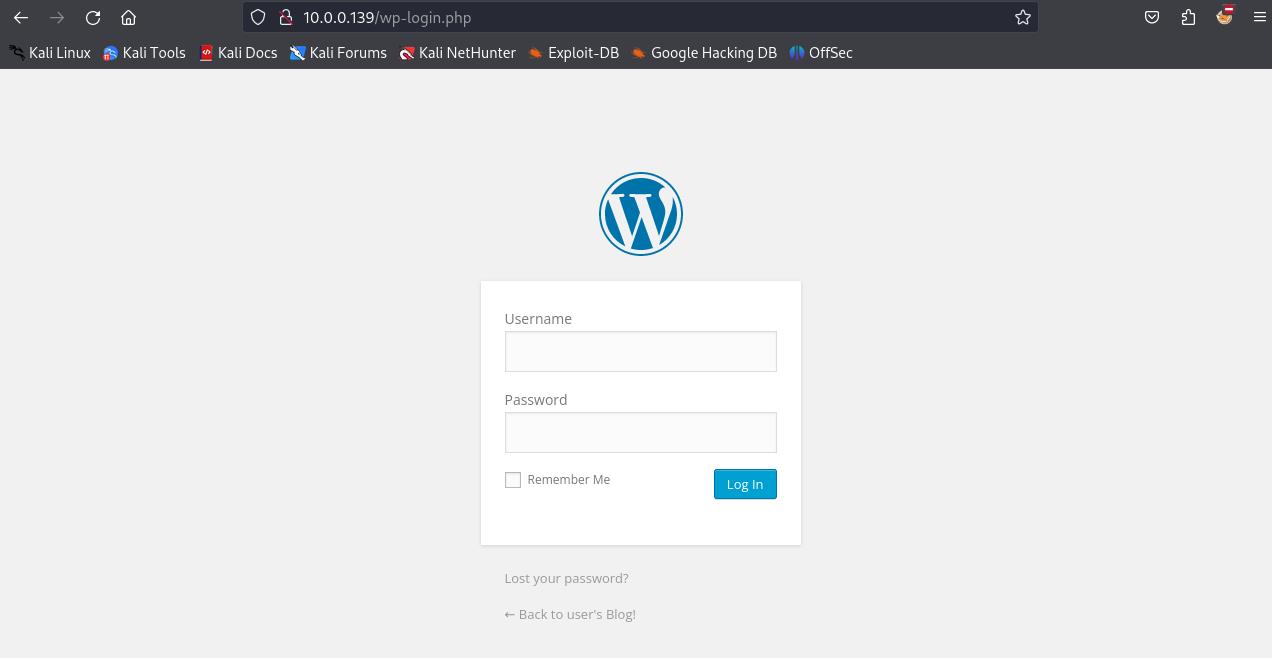 8、网站目录扫描还有一个后台登录wp-login.php文件,浏览器访问靶机IP地址+wp-login.php