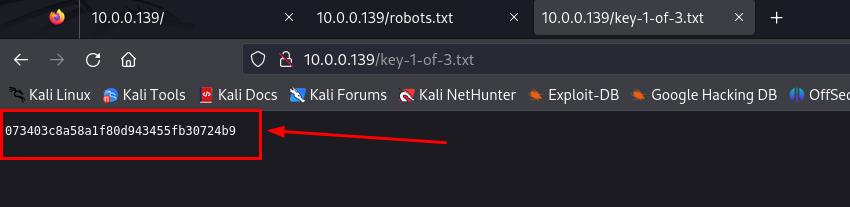 浏览器访问靶机IP地址+key-1-of-3.txt下载后,查看里面的内容: