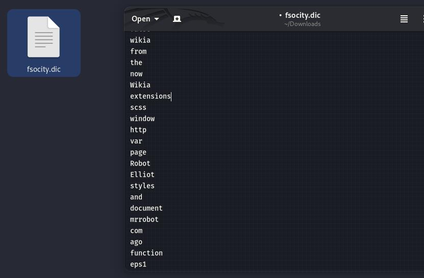 浏览器访问靶机IP地址+fsocity.dic下载后,查看里面的内容,就是一个字典文件。